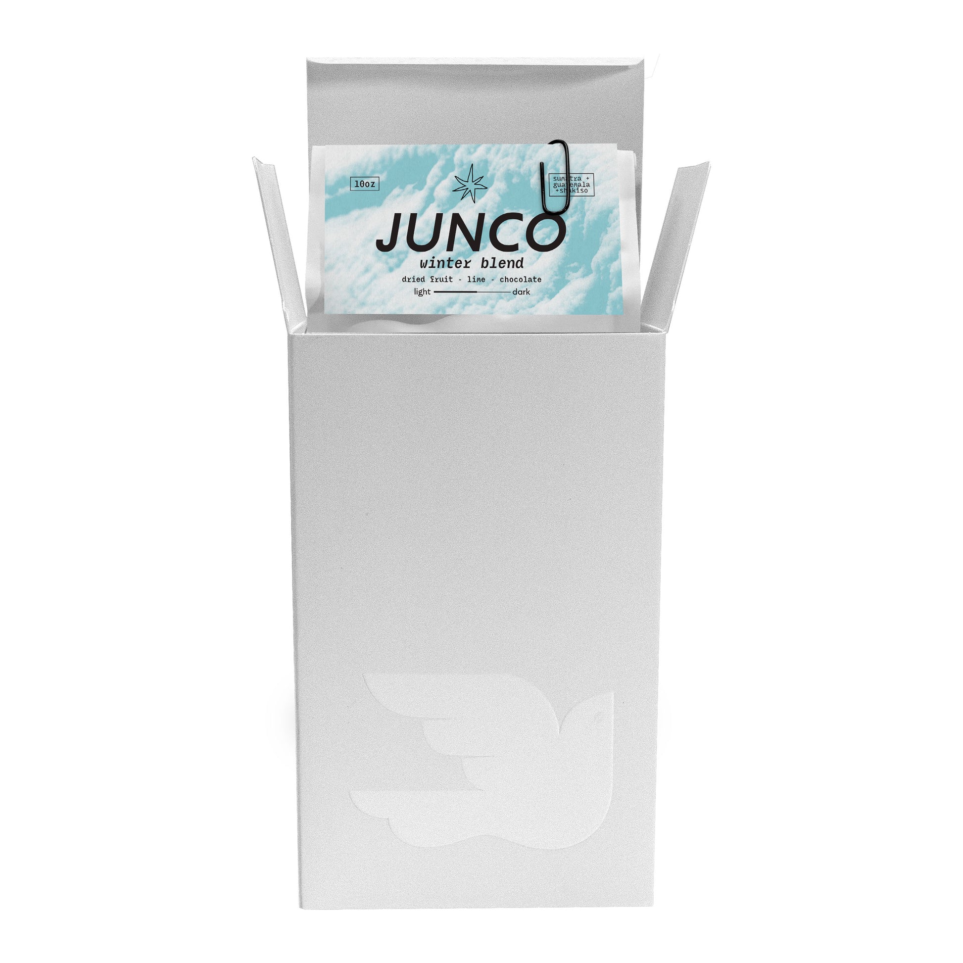 The Junco Blend merges three distinct origins—Sumatra, Guatemala, and Shakiso—into a seasonally inspired coffee crafted for winter enjoyment. This multi-origin composition showcases dried fruit aromatics alongside bright lime notes and smooth chocolate undertones, creating a well-rounded profile that adapts beautifully to your preferred brewing technique. Whether you're using a pour-over, French press, or espresso machine, this blend delivers consistent depth and character throughout the colder season.